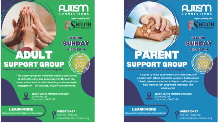 Shiloh United Methodist Church is teaming up with Autism Connections to offer once monthly support groups beginning in January, 2026. Two groups will run simultaneously. The first is a support group for parents whose children are dealing with Autism. This is open to parents who have children of any age. The second is for adults (focus is young adults) living with Autism.