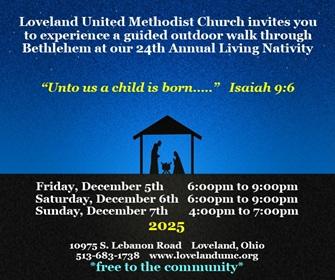 Loveland United Methodist Church invites you to experience a guided outdoor walk through Bethlehem at their 24th Annual Living Nativity!