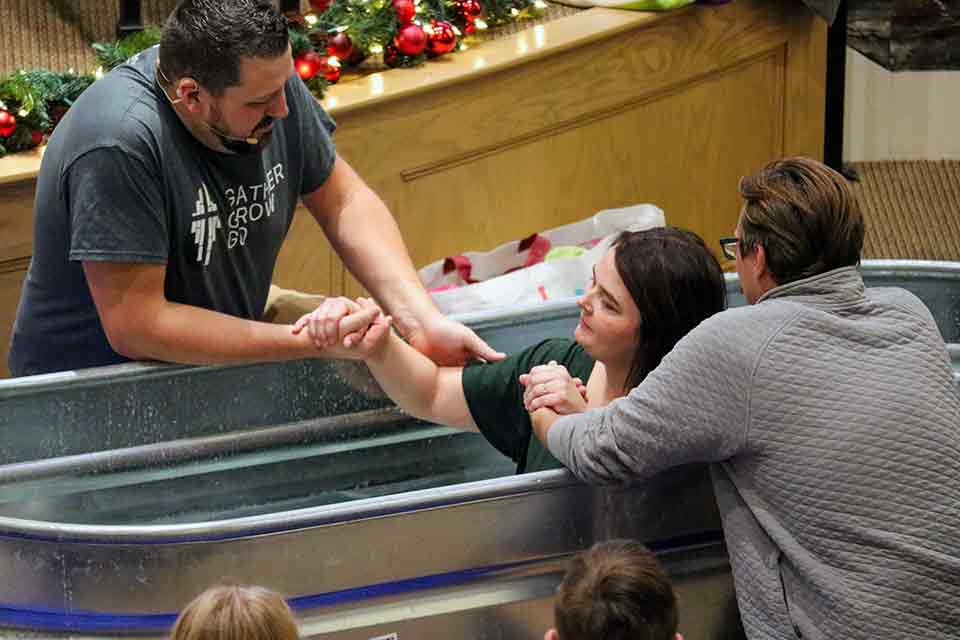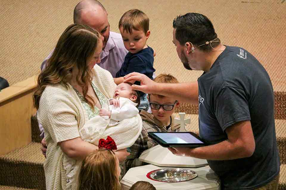 Quarterly classes and inclusive services ensure that everyone can participate in and understand baptism. Dinnell even incorporates the church’s children into services, encouraging them to gather around the baptismal font and immersion tub. “We allow them to put their hands in the water and pray over it with me,” he said. “I want them to be able to touch it, feel it.”